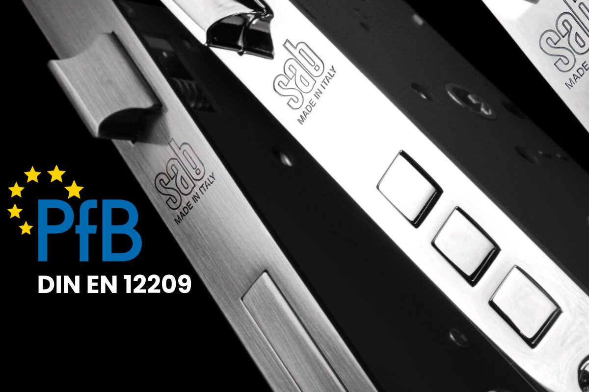 Sab Serrature ha ottenuto la certificazione secondo la normativa DIN EN 12209 per la linea 2200 e 3200, uno standard europeo che definisce le prove da effettuare sulle serrature per verificarne caratteristiche come qualità, sicurezza e affidabilità. La norma stabilisce i test necessari per valutare le principali proprietà tecniche del prodotto.