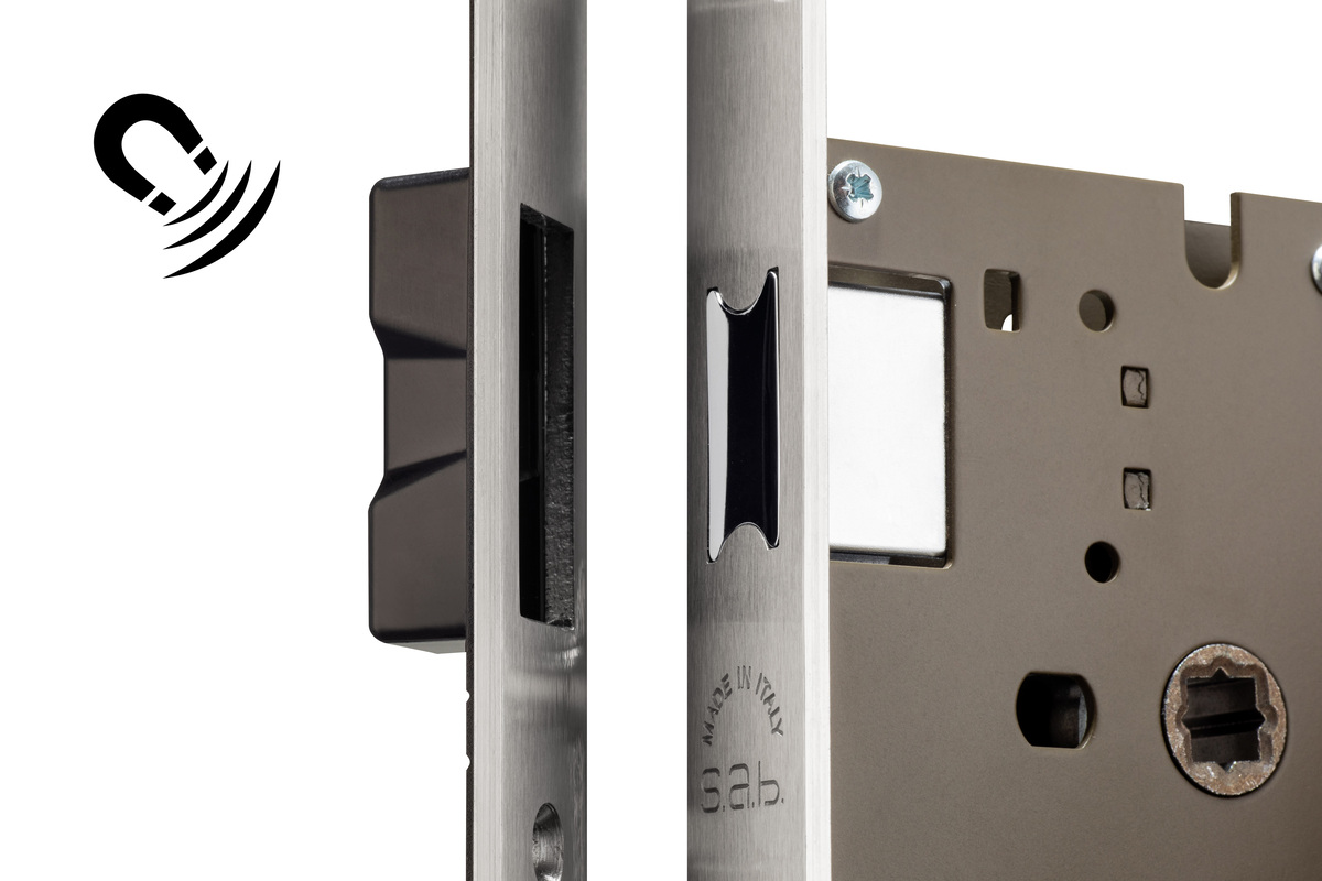 Sab introduce la serratura magnetica nella sua produzione. L’unica serratura con una così vasta gamma di finiture superficiali, colorazioni e la possibilità di personalizzazione. Al momento della chiusura della porta, lo scrocco si aziona magneticamente entrando nell’incontro. Lo sgancio può avvenire sia con maniglia che con l’azionamento della chiave. Scopri la convenienza e la discrezione della nostra gamma di serrature con scrocco magnetico.